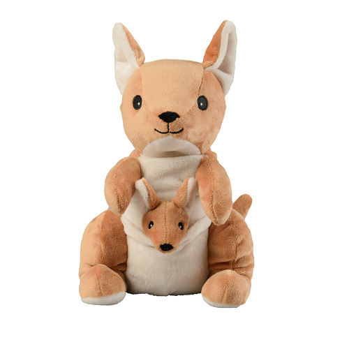 Direkt aus Australien kam es angereist und ist mit seinem süßen Baby-Joey nun auf der Suche nach einem sicheren neuen Zuhause. Das flauschig-weiche Beuteltier hat es am liebsten trocken und warm und duftet herrlich nach Lavendel. Das Känguru ist etwa 27 cm hoch und wiegt etwa 750 g. Das Baby-Känguru lässt sich nicht aus dem Beutel entnehmen.