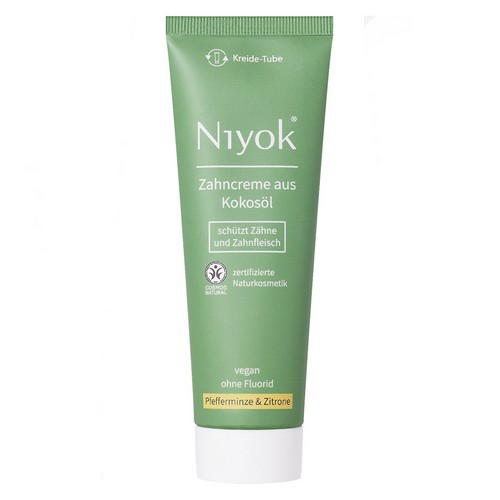 Die natürliche Zahncreme aus Kokosöl von Niyok schützt Zähne und Zahnfleisch. Hochkonzentriertes Bio-Kokosöl beugt Entzündungen vor und wirkt anti-bakteriell. Milde Putzkörper aus Calciumcarbonat reinigen die Zahnoberflächen gründlich und wirken remineralisierend (ohne Fluorid). Xylit komplettiert den Wirkstoffkomplex, indem es Kariesbakterien an der Reproduktion hindert. Verpackt in einer plastikreduzierten Kreide-Tube.
