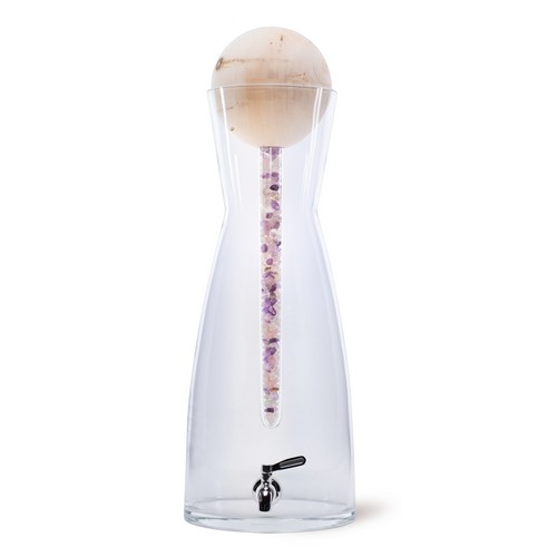 - ca. 360 mm mundgeblasener Spezial-Glasstab, gefüllt mit drei verschiedenen Edelsteinen (Rosenquarz,Bergkristall,Amethyst)–gastrotauglich